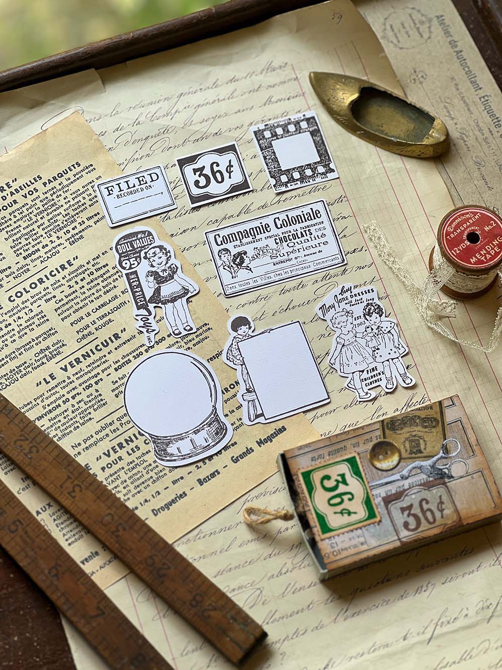Elevate your vintage-themed crafts and junk journals with 'Happy Days' Collage Paper Kit; a thoughtfully...