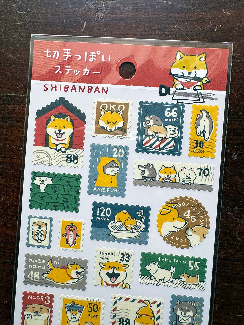 Postage Stamp Stickers - Dog (Shibanban) しばんばん